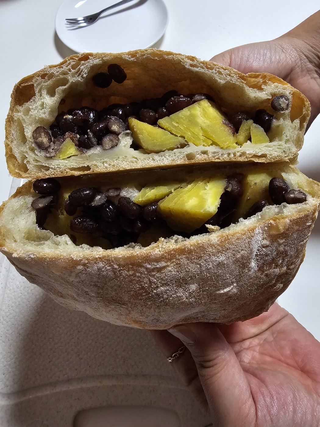 빵 속에는 팥, 치즈, 완두콩 등등 여러가지가 들어가 있습니다.