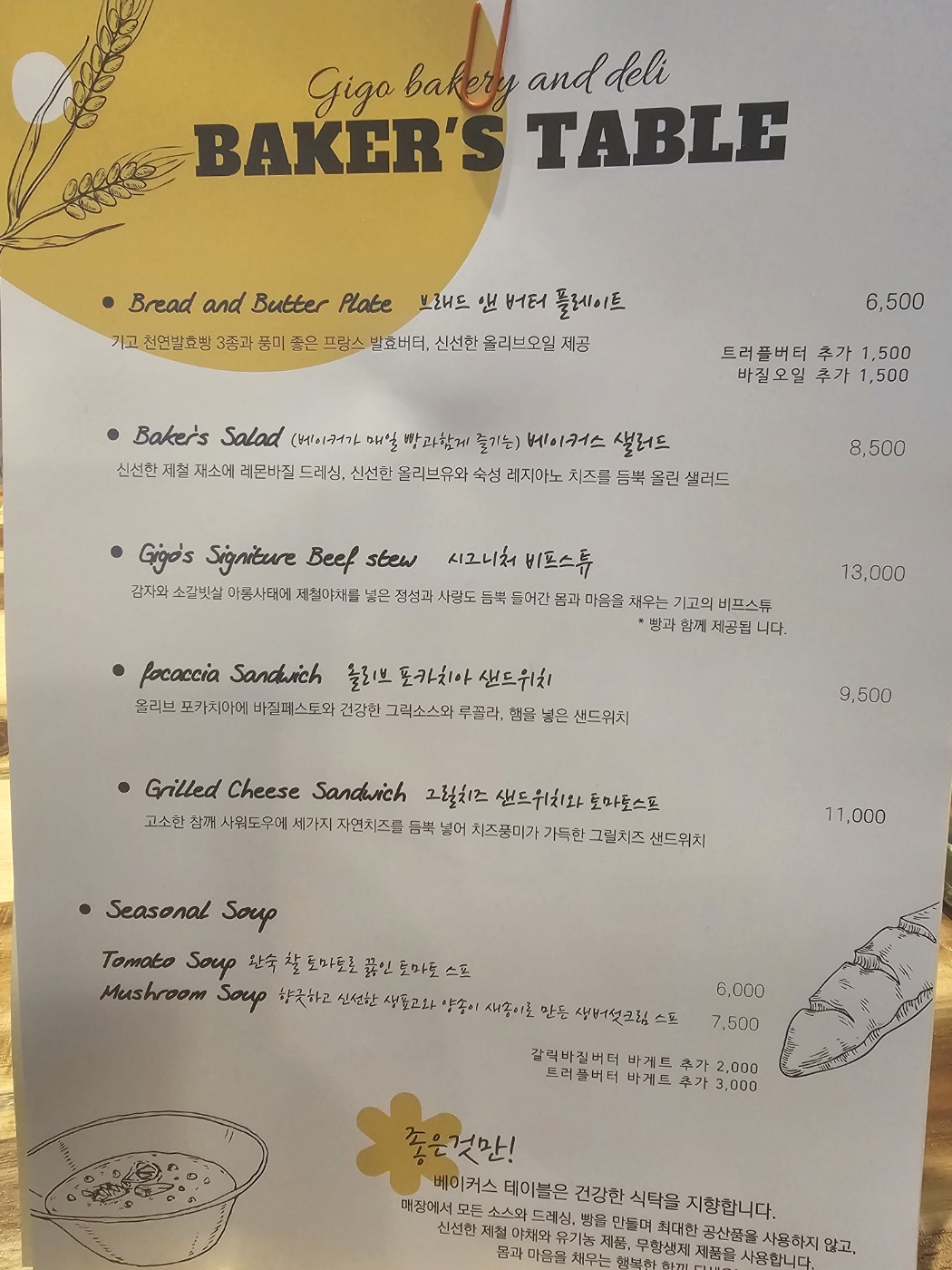 기고 베이커리 앤 델리 "메뉴판"